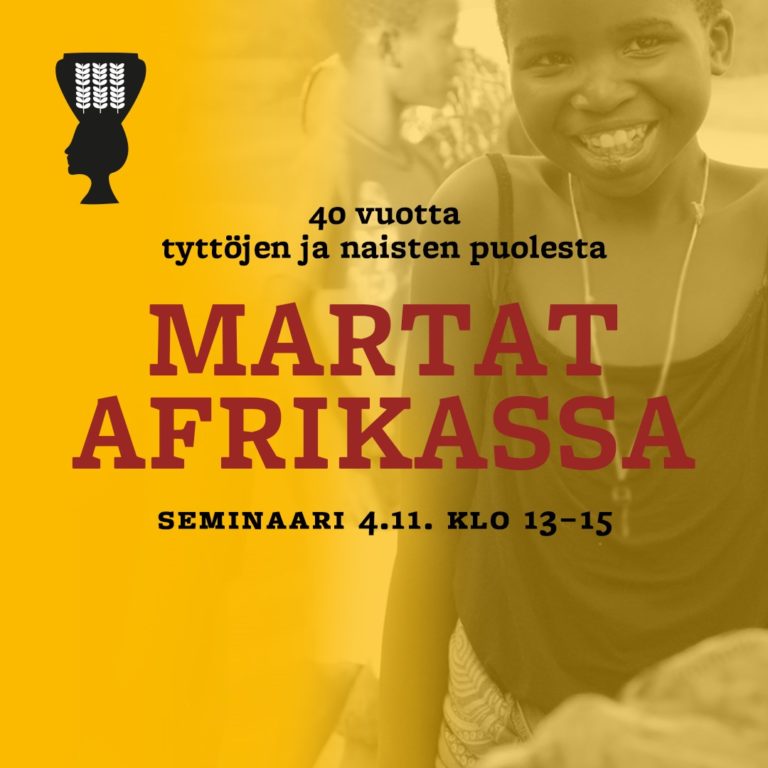 Haluatko tukea työtämme? Voit tehdä meille lahjoituksen. Tuellasi autamme naisten ja tyttöjen kouluttautumista, arjessa selviämistä ja hyvinvointia Afrikassa. Lisätietoa osoitteessa www.martat.fi/lahjoita.
