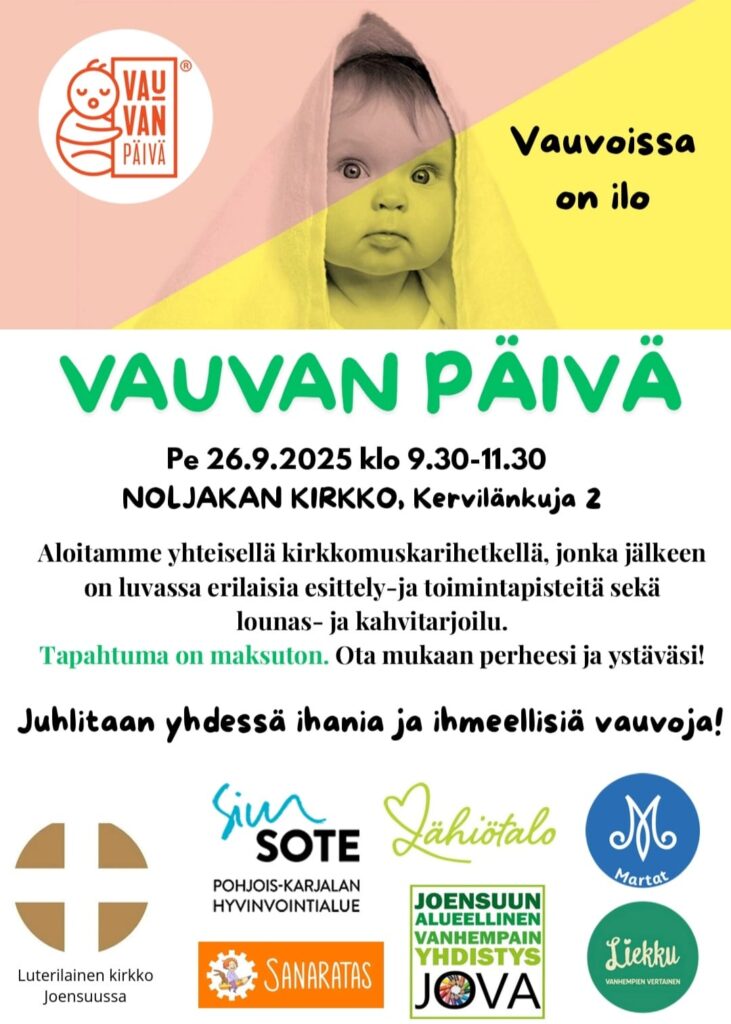 Joensuu: Martat on mukana Vauvan päivän tapahtumassa klo 9.30-11.30 Noljakan kirkolla (Kervilänkuja 2, Joensuu). Tapahtuman mainos alla.