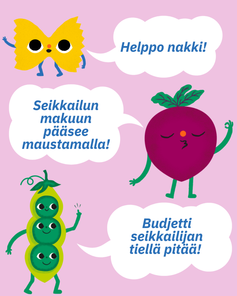 Kampanjan ytimessä on ajatus siitä, että ruokahetket voivat olla yhteisiä seikkailuja. Lapsia kannustetaan mukaan niin kauppareissuille, ruoanlaittoon kuin uusien makujen kokeiluun. Tätä tukevat kampanjan leikkisät maskottihahmot: Helppoilija, Pihistelijä ja Fiilistelijä, jotka tarjoavat vinkkejä arjen helppouteen, edullisiin valintoihin ja maukkaisiin, ravitseviin ruokiin.
