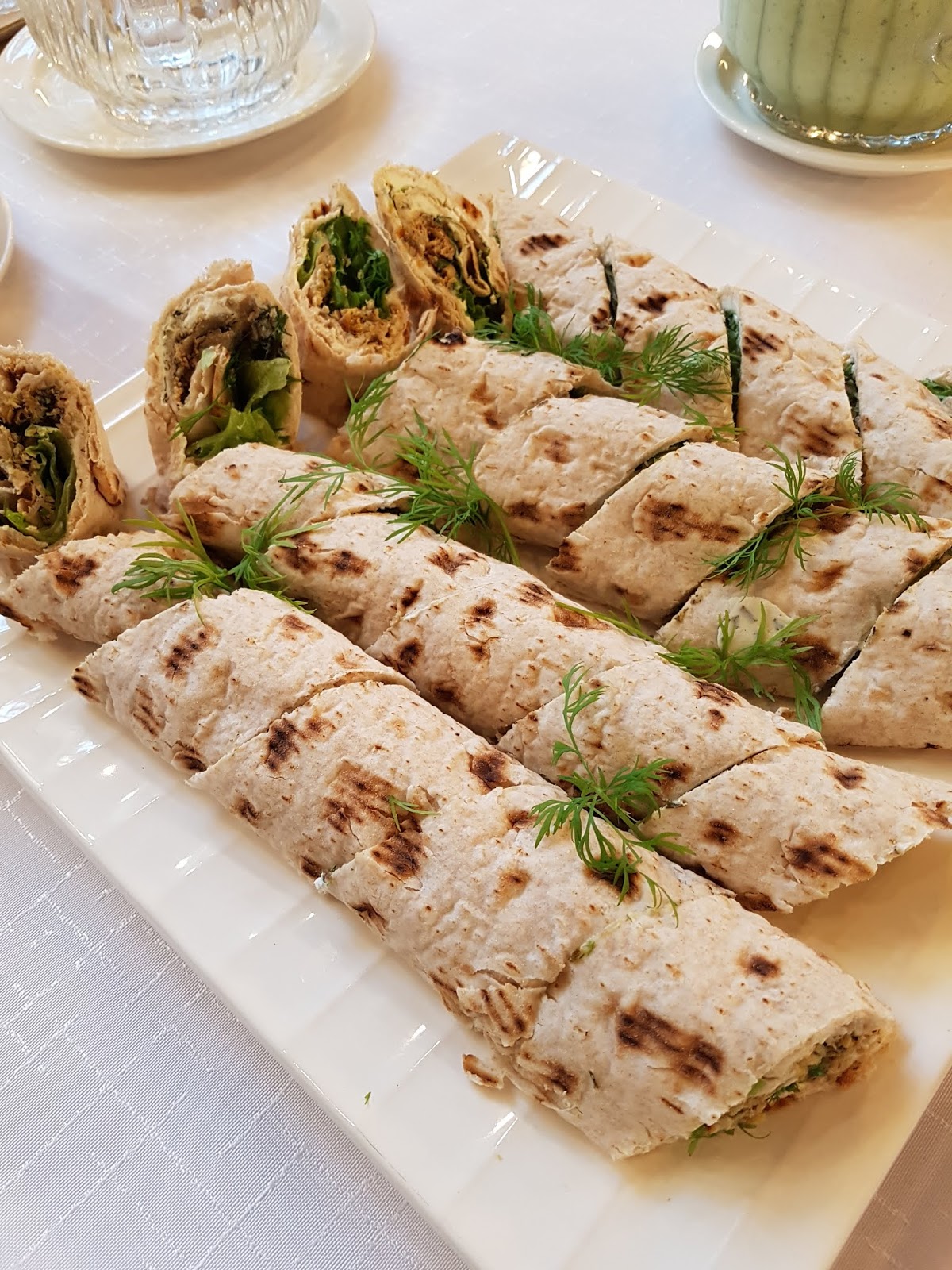 Kun saimme ruaat valmiiksi, katoimme pöydän ja aloitimme juhla-aterian skoolaamalla lasillisilla minttuista kurkku-sitruunapirtelöä.