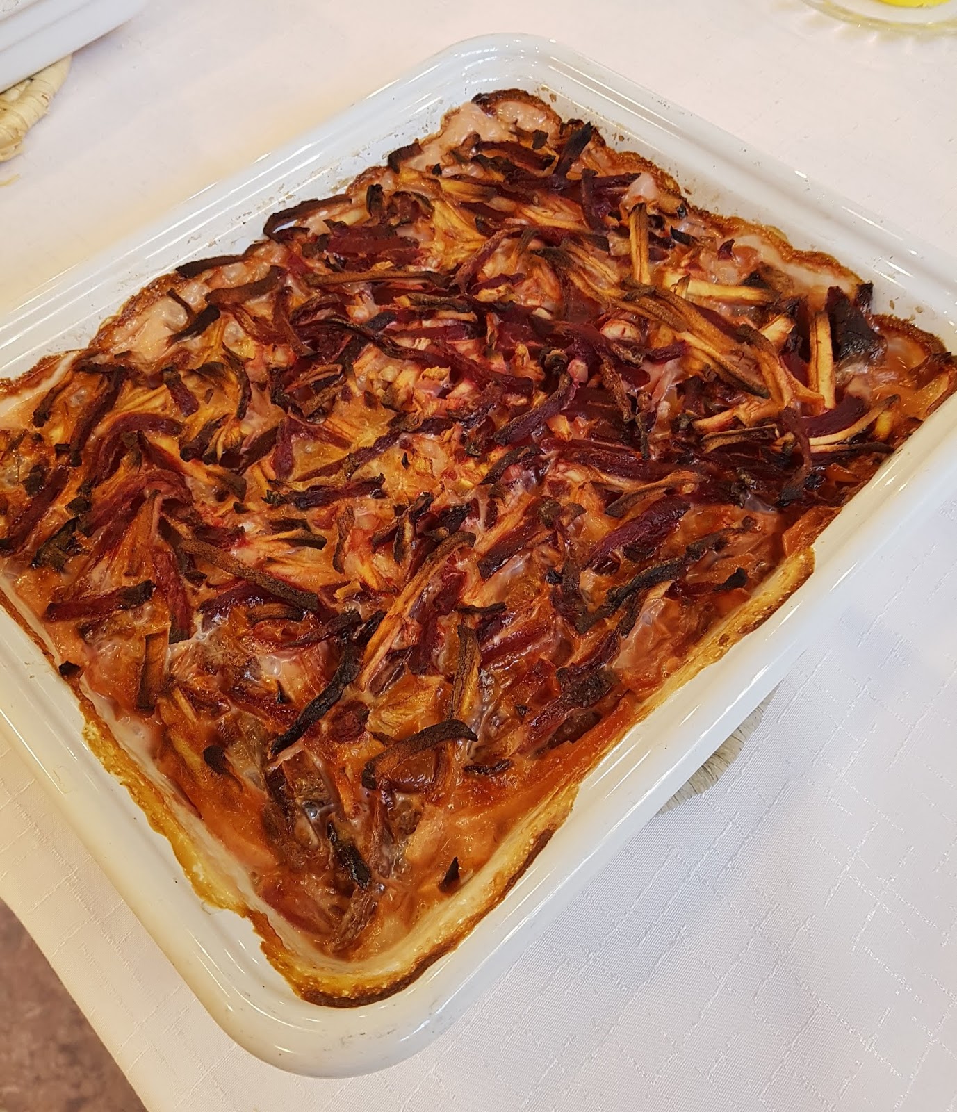 Punajuuri-omenapaistos on monen marttaillassa olleen ruokalistalla varmaan jo tänä viikonloppuna. Ideoimme, että kokeilemme kotona marttojen punajuuri-omenapaistosta lisäämällä siihen Aura-juustoa.