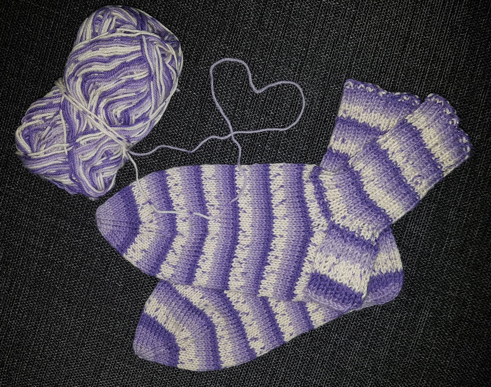 Tänään sain valmiiksi lilan sävyiset villasukat Novita Nalle Garden -langasta. Ohjeena käytin Novitan Nalle -langasta perusvillasukkaohjetta. Sukissa on vahvistettu kantapää ja kärjessä leveä nauhakavennus.