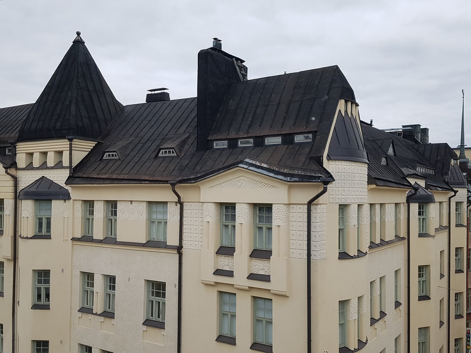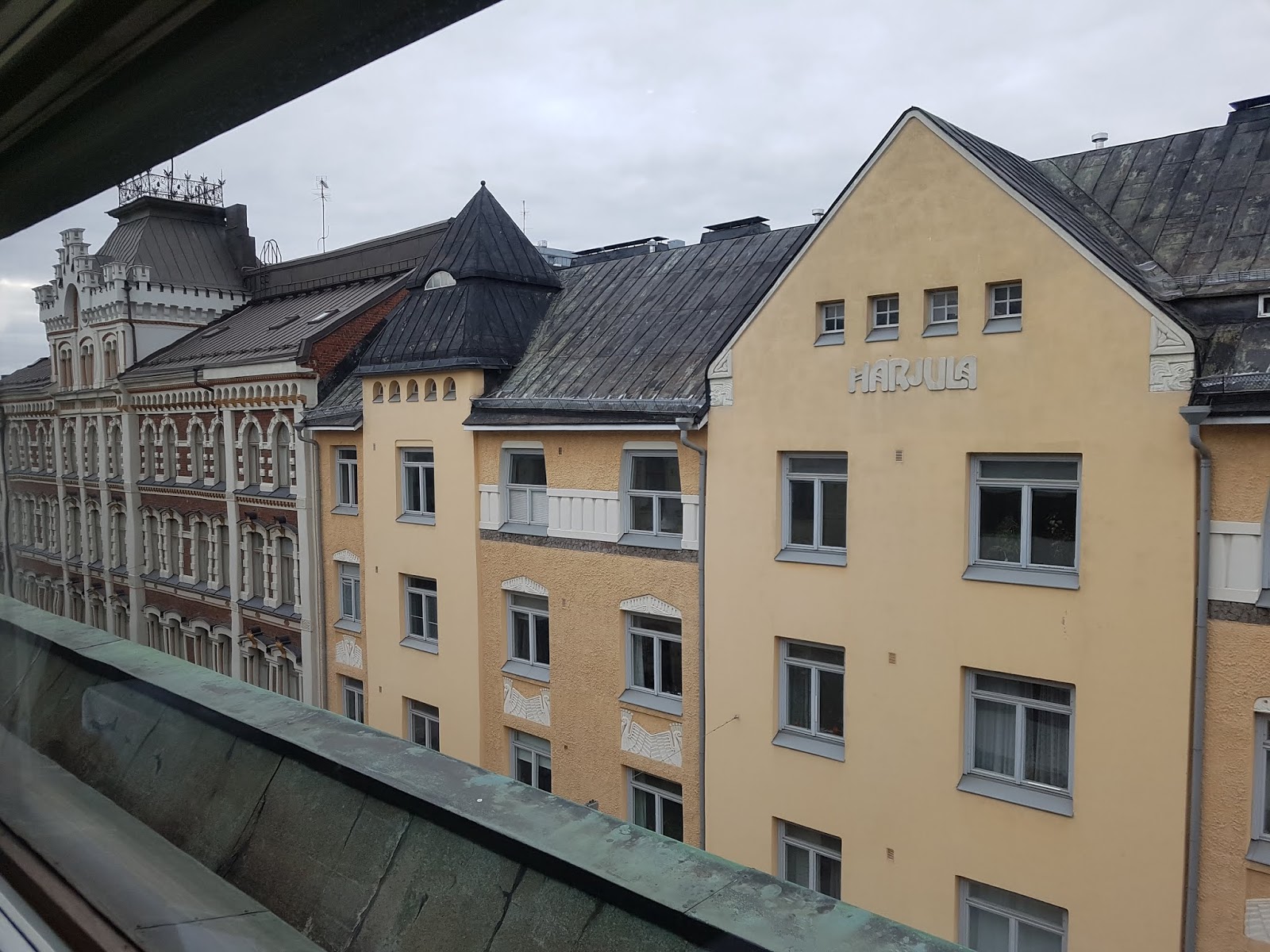Tekniskan salit -tilausravintolasta avautui hienot arkkitehtuuriset näkymät! Kyllä oli kauniisti koristeltuja taloja!
