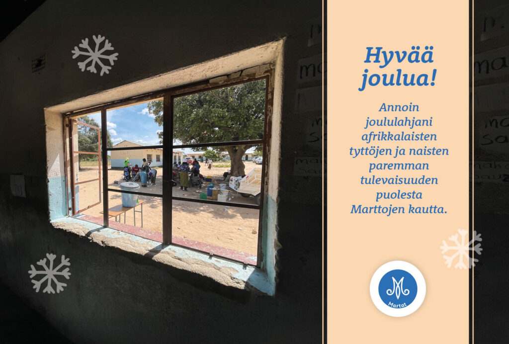 Voit ladata käyttöön oheisen joulukortin, joka kertoo, että olet antanut joululahjasi afrikkalaisten tyttöjen ja naisten tulevaisuuden hyväksi Marttojen kautta.