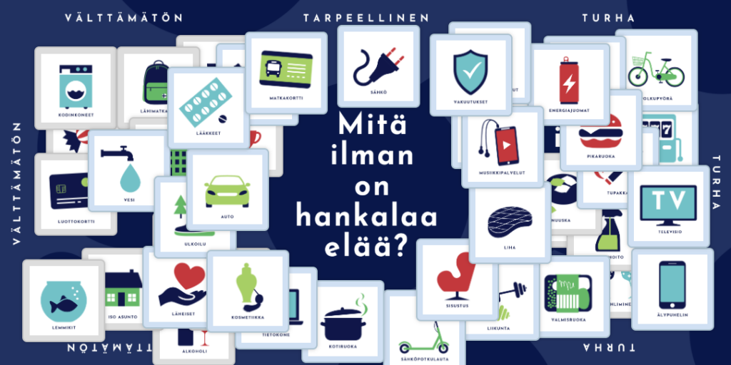 Eri elämäntilanteissa erilaiset asiat tuntuvat välttämättömiltä, tarpeellisilta tai turhilta. Ei ole myöskään olemassa yhtä oikeaa vastausta siihen, mitkä asiat mihinkin näistä kategorioista menevät. Esimerkiksi aikuinen voi nähdä nettipelit silkkana turhuutena, siinä missä nuorelle ne voivat olla välttämätön sosiaalisten verkostojen ylläpitämisen tapa. Erilaisten asioiden edellä mainittuihin kategorioihin laittamisesta keskusteltaessa voidaan parhaimmillaan saada uusia ajatuksia ja näkökulmia siihen, miten kukin meistä omaa arkeaan arvottaa.