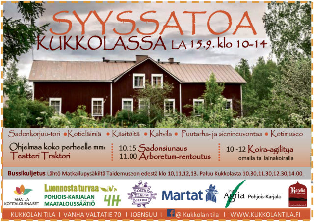 Tervetuloa näytteilleasettajaksi Syyssatoa Kukkolassa -tapahtumaan ensi lauantaina 15.9.2018 klo 10-14!