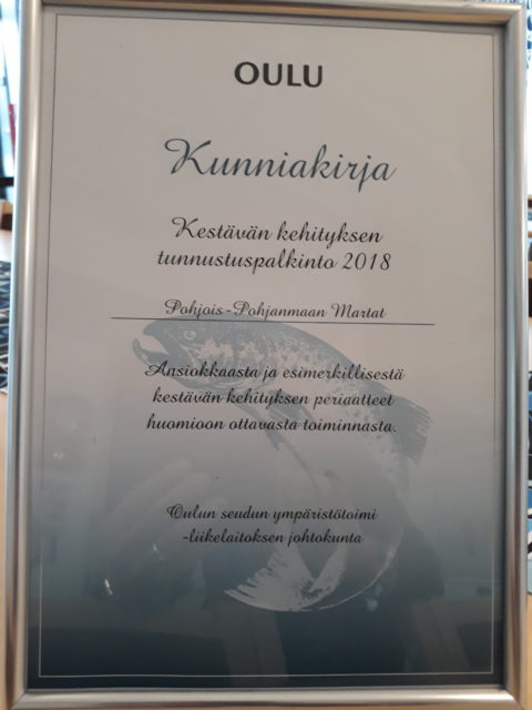 Oulun kaupungin kestävän kehityksen tunnustuspalkinto Pohjois-Pohjanmaan Martoille