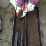 5. Täytä laatikko mullalla lähes reunoja myöten.