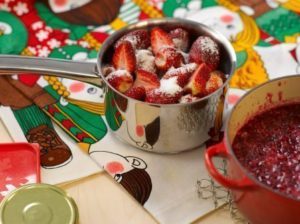 1. Pane peratut marjat ja sokeri kerroksittain teräs- tai emalikattilaan.