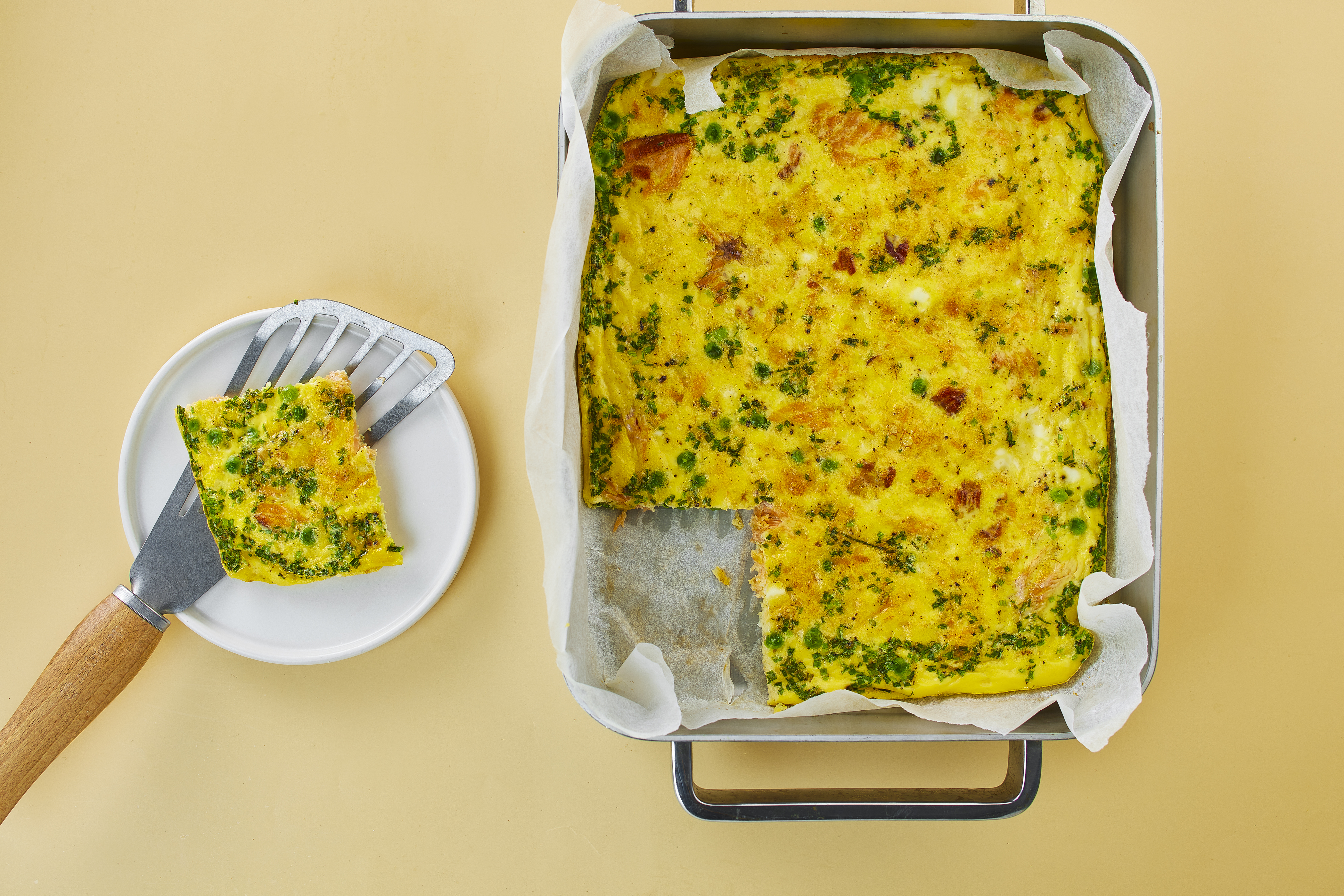 5. Ripottele pinnalle juustoraaste. Paista munakasta 200 asteessa noin 30 minuuttia tai kunnes munakasmassa on hyytynyt.