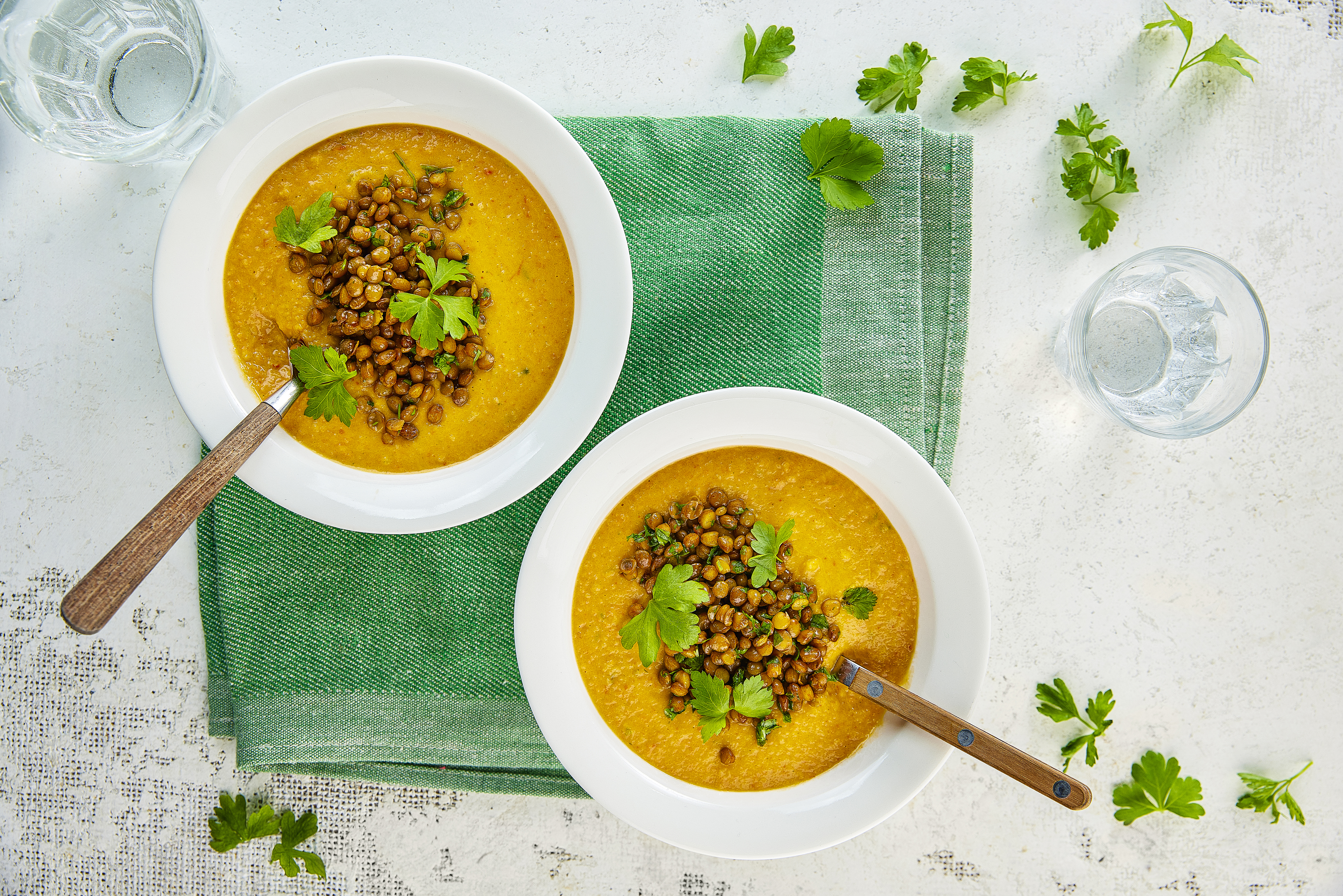 - Valmista paahdetut linssit. Huuhtele ja valuta linssit huolellisesti.