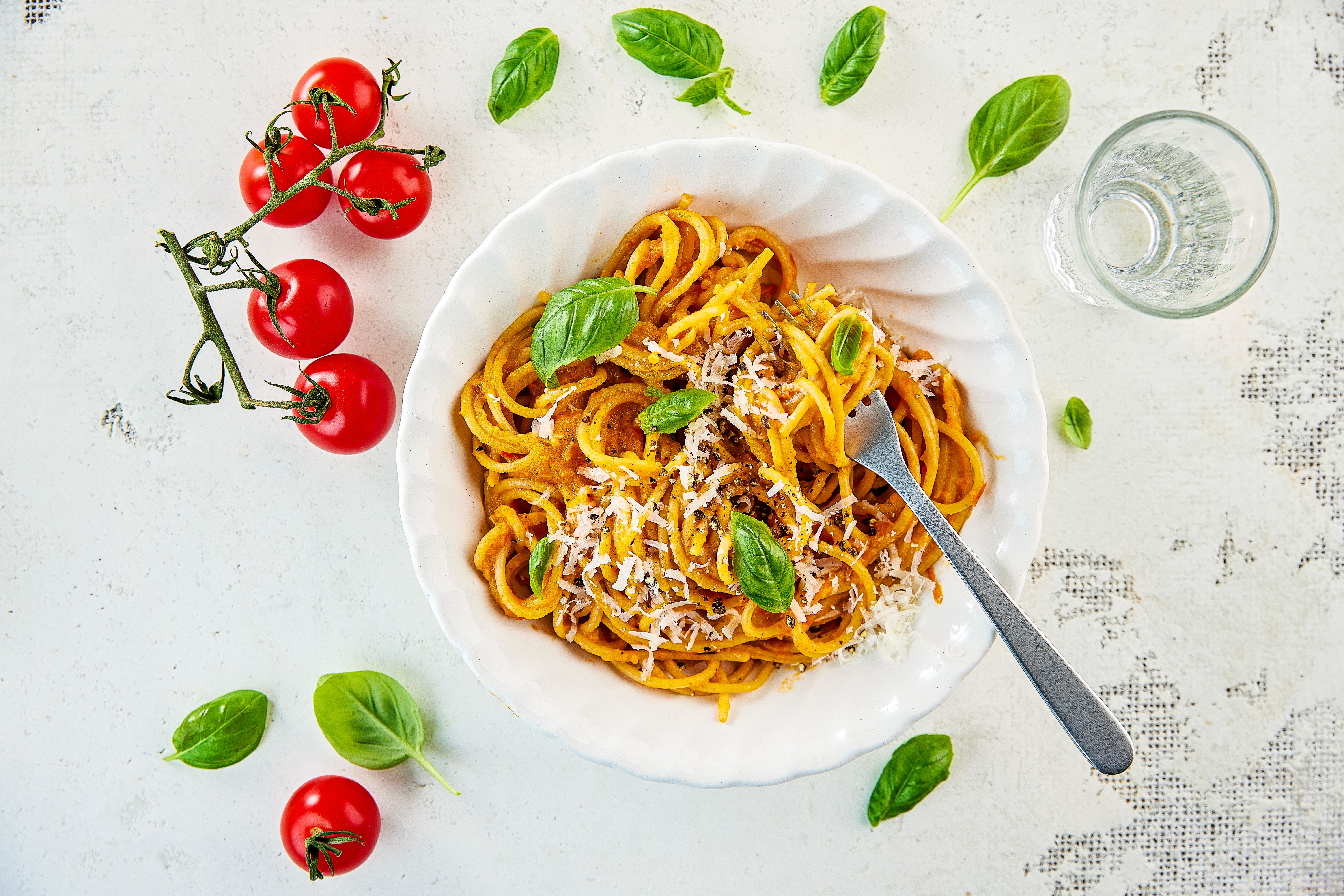 - Sekoita kastike pastan joukkoon. Viimeistele tuoreella basilikalla ja halutessasi parmesanilla.