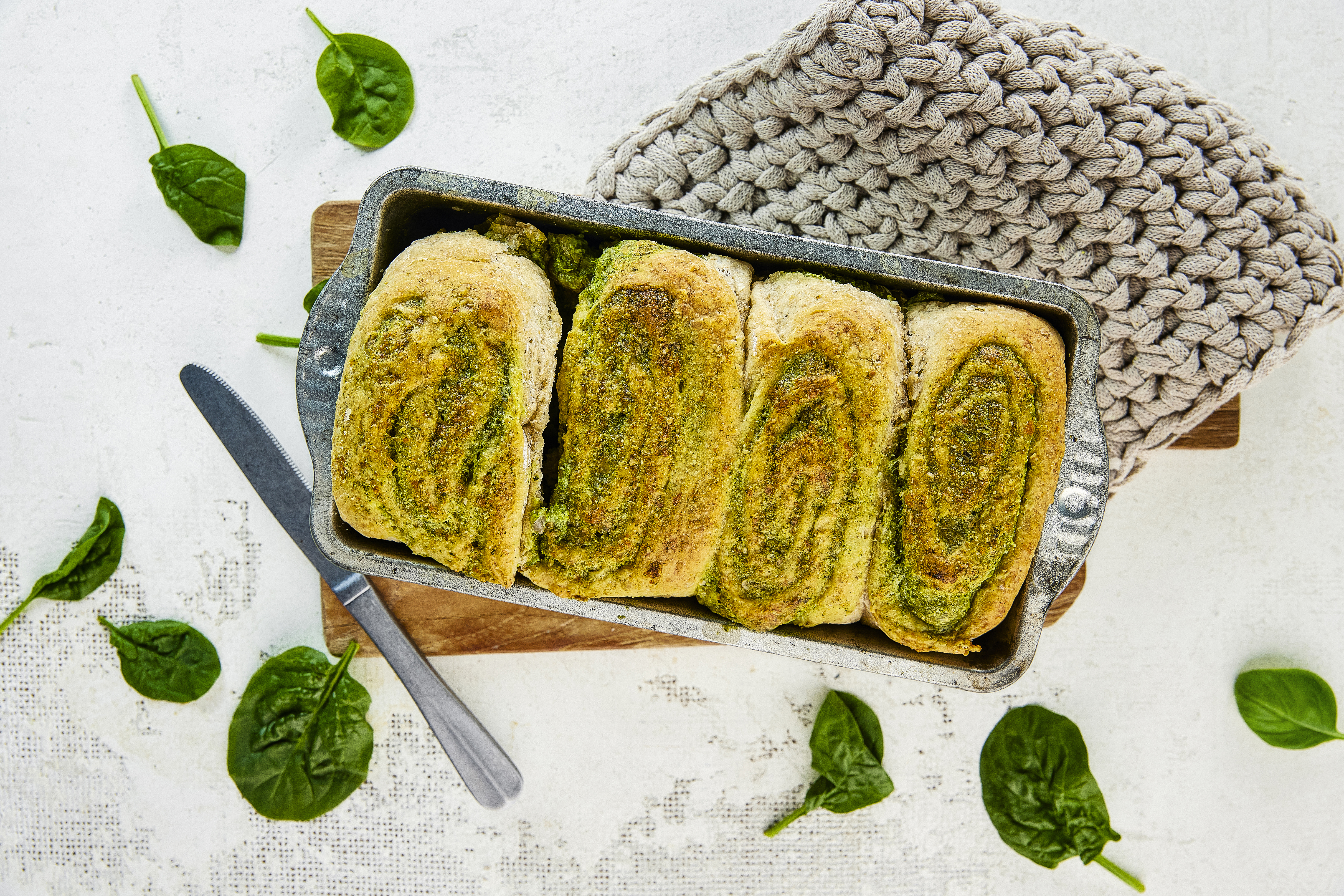 Pehmeä pinaattitäyteleipä tuo leivontaan väriä ja makua. Pinaattitäyte tekee rullista meheviä. Tämä leipä on täydellinen evääksi tai piknikille, sillä täytteen ansiosta leipä ei kaipaa erillistä levitettä.