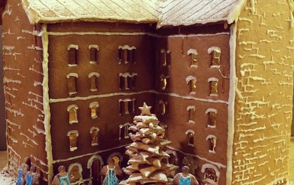 Kokeile leikata vaahtokarkkeja paloiksi ja kiinnittää talon katolle tai aidaksi talon ymärille. Tulos on runsas ja houkutteleva.