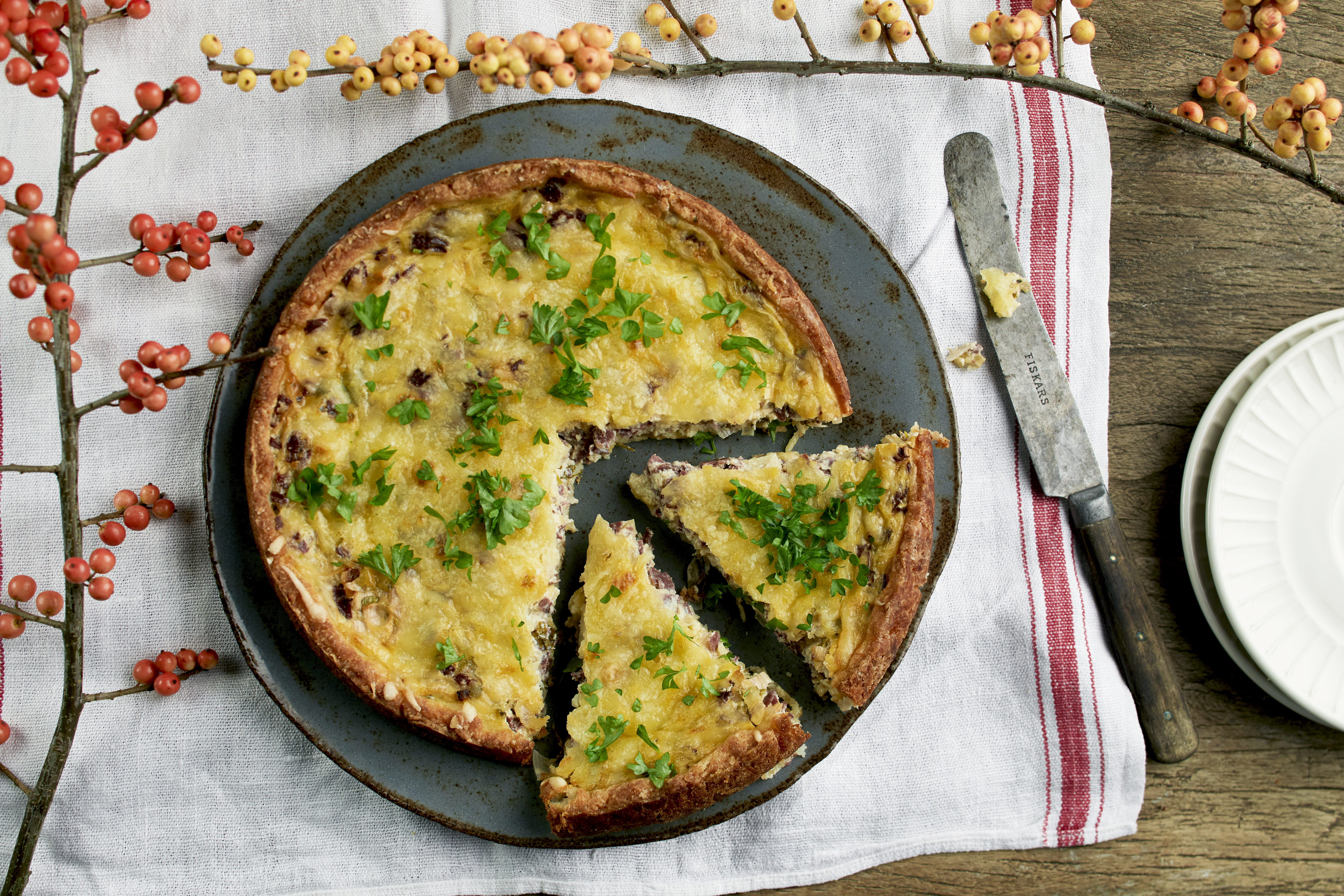 3.Painele kevyesti voidellun, piirasvuoan (halkaisija n. 27 cm) pohjalle. Pistele pohjaa haarukalla.