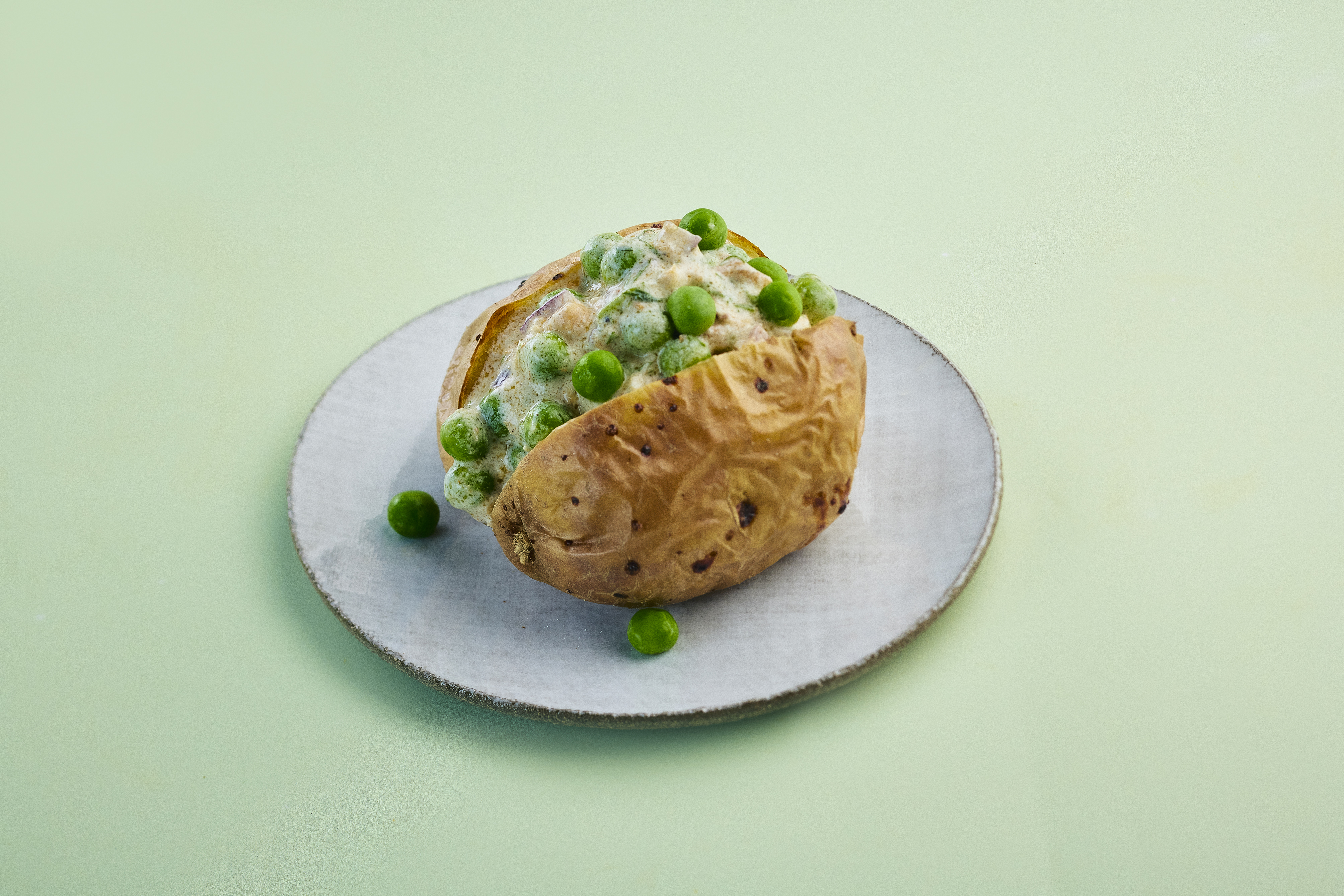 3. Valmista täyte, kun perunat ovat uunissa. Kuumenna ja jäähdytä pakasteherneet pakkauksen ohjeen mukaan.