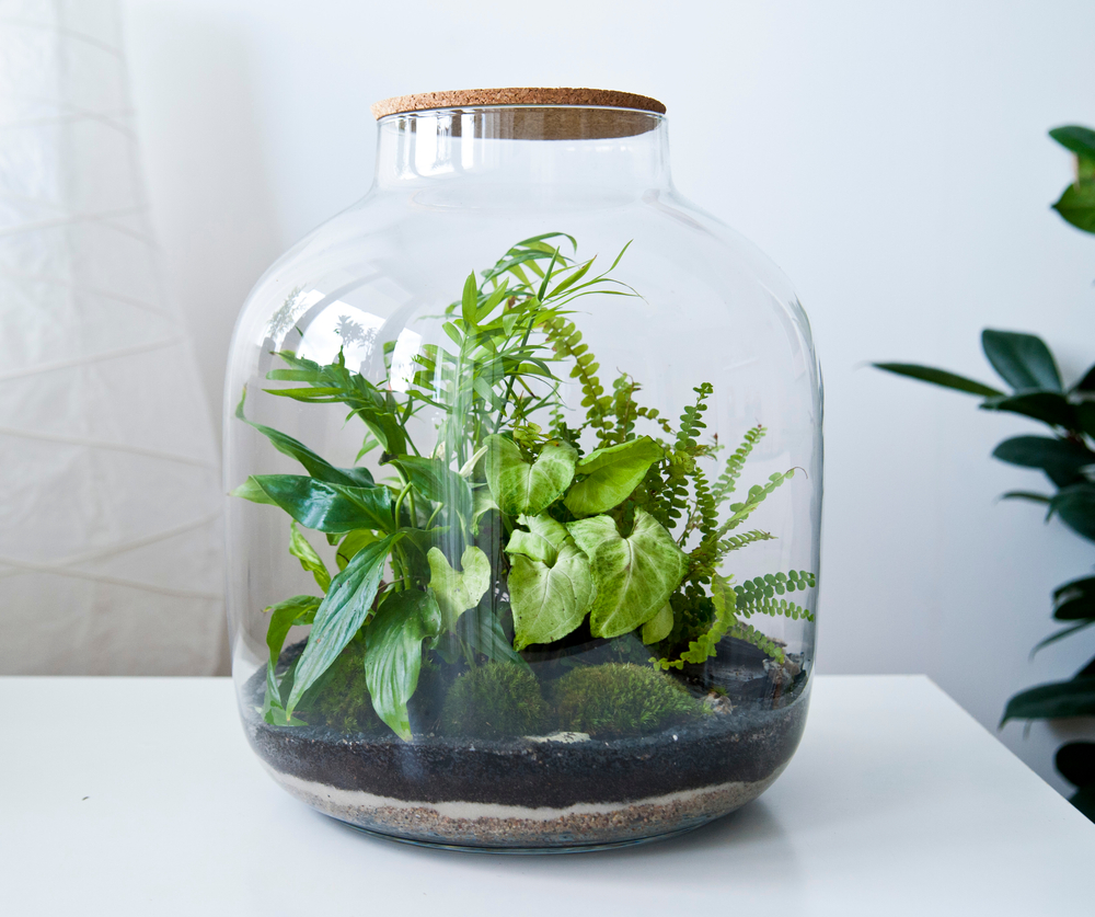 - Lasipurkin jokainen voi tuoda itse. Purkin on hyvä olla iso suinen ja riittävän suuri. Koko riippuu istutettavista kasveista.